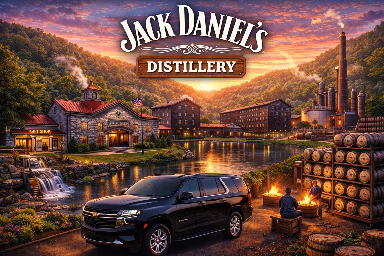 Enjoy seamless round-trip luxury transportation to the Jack Daniel’s Distillery in Lynchburg. Travel in a premium SUV or Sprinter van through scenic Tennessee countryside and relax while we handle the drive—so you can focus on the history, craftsmanship, and flavor of this iconic distillery. (6 Hours)