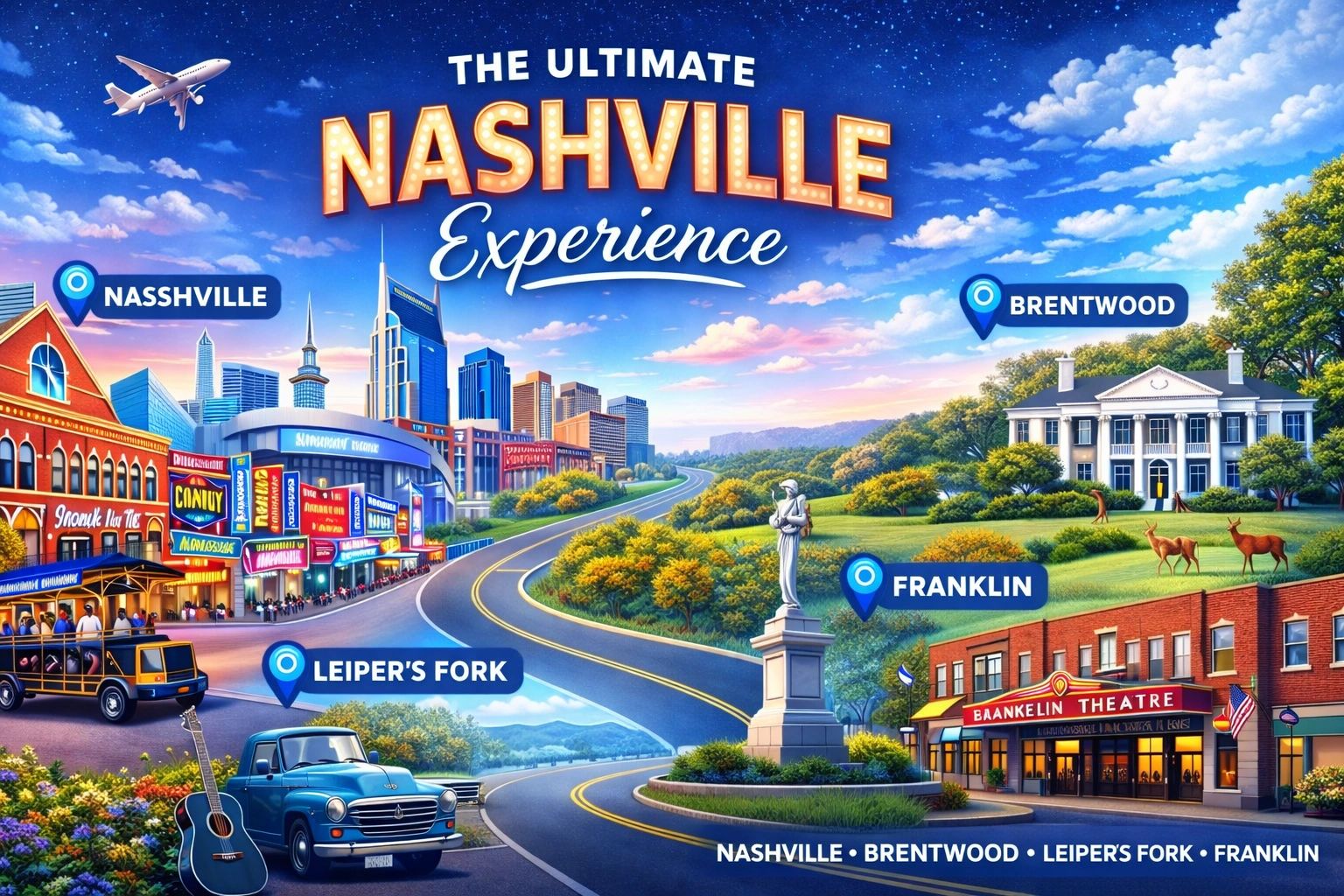Discover the best of Nashville City, Celebrity Homes, Franklin, and Leiper’s Fork on one unforgettable tour. From iconic downtown landmarks and celebrity neighborhoods to historic towns and scenic countryside, this experience perfectly blends Music City energy with classic Southern charm. (4 Hours)